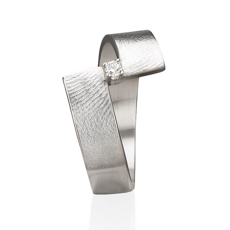 Zilveren ring met vingerafdruk en chaton met zirkonia steen