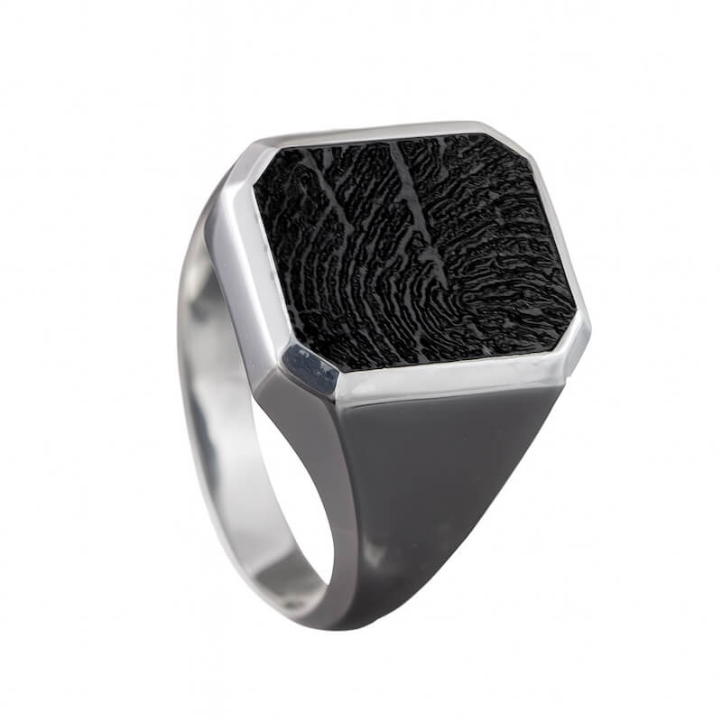Deze zilveren ring wordt met de hand gemaakt en gepersonaliseerd met de door u aangeleverde vingerafdruk. De vingerafdruk wordt gelasergraveerd op de ring.